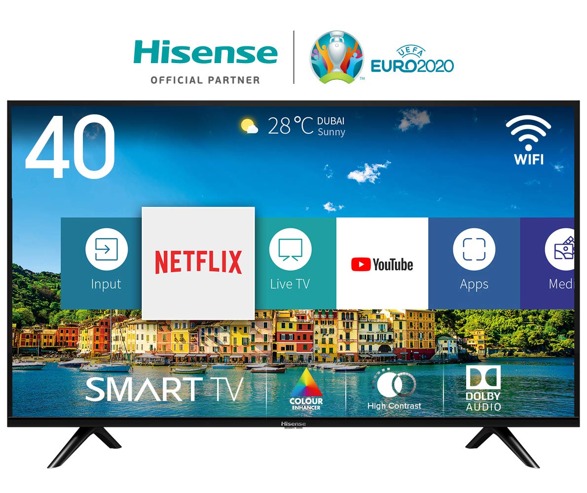Hisense H40BE5500, Smart TV Full HD, 2 HDMI, 2 USB, Salida Óptica y de Auriculares, WiFi, Audio DBX, Procesador Quad Core, Smart TV VIDAA U 2.5, 802.11bgn,2.4G Ethernet RJ-45 HDMI USB, 40", Negro [Clase de eficiencia energética A+]