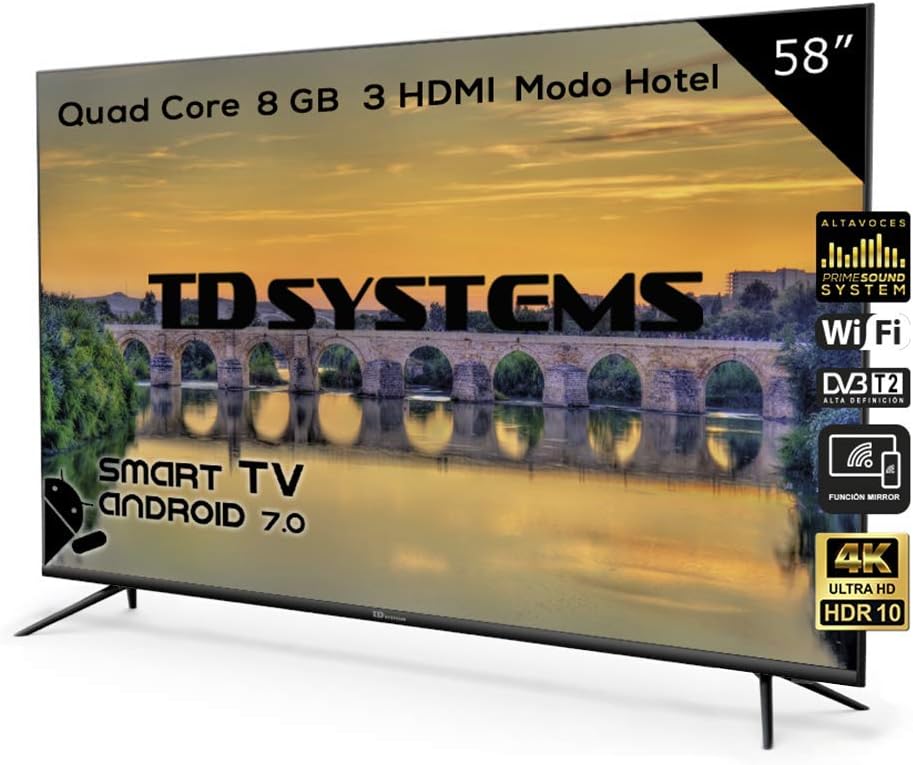 Televisor Led 58 Pulgadas Ultra HD 4K Smart, TD Systems K58DLX9US, resolución 3840 x 2160, HDR10, 3X HDMI, VGA, 2X USB, Smart TV. [Clase de eficiencia energética A]